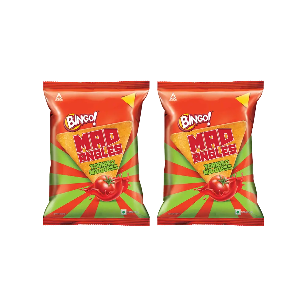 Pack containing 2 individual 60 g Bingo Mad Angles Tomato Madness packs